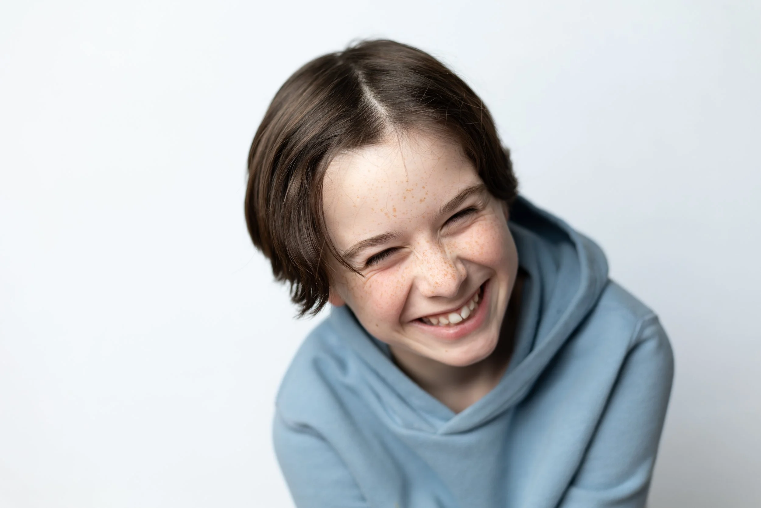 Short, in-studio sessions on a white backdrop, focused on your child just as they are right now. Simple, timeless, and perfect if you want a clean portrait that still feels real.